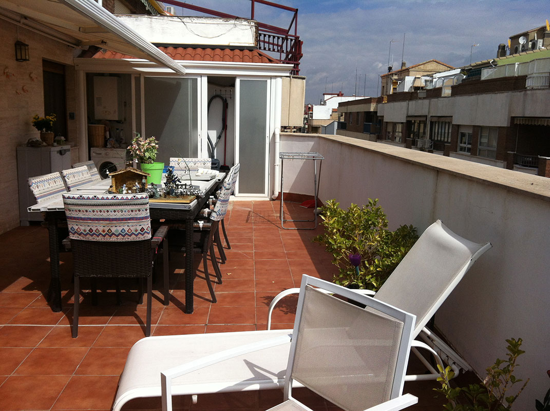 Reforma de la terraza de una vivienda situada en el centro de Albacete. En este proyecto se optó por la colocación de un nuevo pavimento especial para exteriores imitación madera mientras que para el revestimiento de la chimenea y salida de gases se colocó un porcelánico con acabado hidráulico.